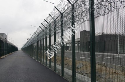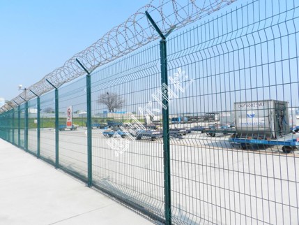 飛機場圍欄又稱作“Y型安全防御護網(wǎng)”,是由V型支架立柱,加強型焊接片網(wǎng),安全防盜連接件和熱鍍鋅刀片刺籠組成強度和安全防御性級別很高。近年來,被廣泛應用在機場,軍事基地等高安全場所。