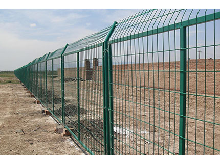 規格:浸塑絲徑 4.0--5.0mm 網孔 80 X 160mm 立柱 φ48X1.0mm 尺寸 1000--2400 X 3000mm 外傾防攀角度30;附件:防雨帽、連接卡、防盜螺栓。
