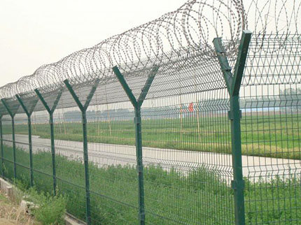 軍事基地防護(hù)網(wǎng)外觀尺寸為1700×3000mm(立柱中心距),邊框采用30×50×2.0mmd的矩管制成,網(wǎng)片由直徑為4mm的鋼絲焊接,網(wǎng)孔75×150mm,立柱用40×40×2.5mm的方管制成。立柱、網(wǎng)片鏈接板采用90°折角,厚度4mm鋼板制成,金屬網(wǎng)應(yīng)進(jìn)行鍍鋅后防腐浸塑處理,防護(hù)柵欄安裝做到“嚴(yán)、直、齊、美”,線路封閉嚴(yán)實(shí),不留間隙;沿線路方向順直,不忽遠(yuǎn)忽近;防護(hù)柵欄頂端和下端縱向過渡平滑整齊,不忽高忽低;要求整體效果美觀,避免給人凌亂感覺。安裝前應(yīng)平整場地,柵欄底部距離地面高度按10cm設(shè)計(jì),不滿足時(shí),應(yīng)進(jìn)行回填處理。